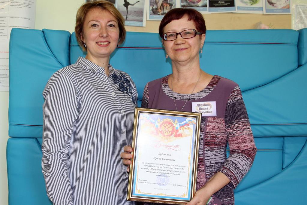 Психологи тюремного ведомства изучили методы профилактики профессионального выгорания и приёмы работы с кризисными состояниями. Обучающий семинар провела доцент кафедры психологии развития и образования МарГУ, кандидат психологических наук Ирина Дремина.