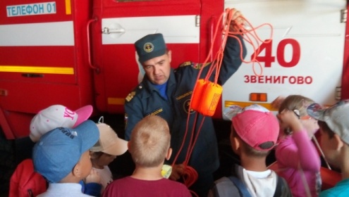 В среду, 5 июня, дети, отдыхающие в пришкольном лагере Звениговской средней школы № 1, посетили пожарно-спасательную часть № 40. С ребятами встретился государственный инспектор по маломерным судам Марат Галимьянов.
