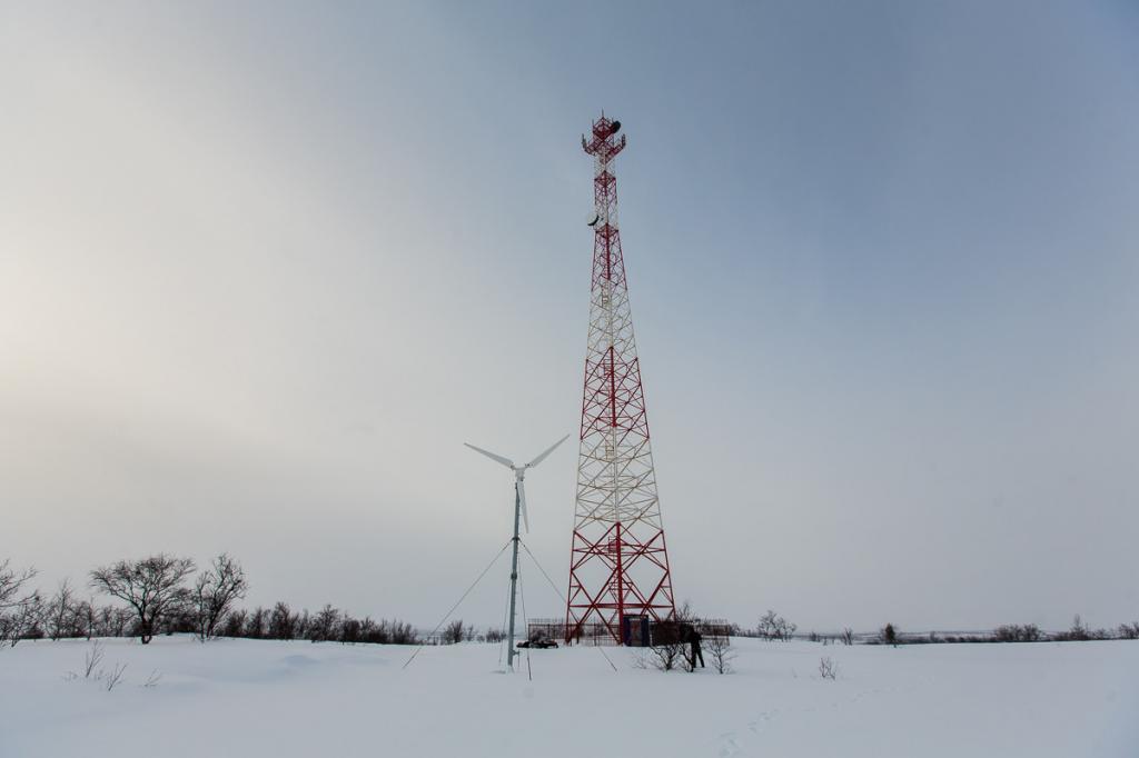 — Базовая станция, работающая на энергии ветра. За Полярным кругом на Кольском полуострове находится одна из самых необычных базовых станций — она расположена в тундре и покрывает участок, где сходятся дороги трёх направлений: Мурманск — Териберка — Туманный. Населенных пунктов в этом районе нет, но с учетом погодных условий Кольского полуострова связь жизненно-необходима водителям. Охват такой станции составляет около 30 км, для электроснабжения станции используется ветряной генератор.
