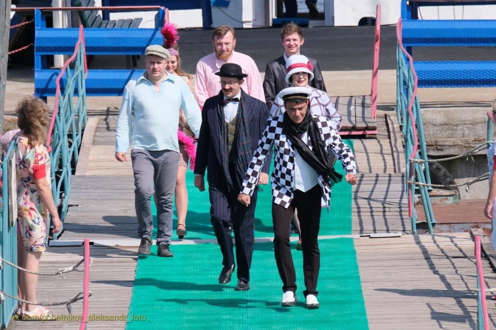Ровно в 10 утра к берегу пришвартовался «Теплоход Скрябин», на котором прибыл Бендер. В его роли выступил заслуженный артист Российской Федерации Юрий Синьковский.