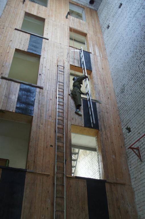 После этого проверили и физическую подготовку лейтенантов. Они надевали на скорость боевую одежду пожарного, вязали двойную спасательную петлю, подтягивались, поднимались по штурмовой лестнице на учебную башню, проходили 100-метровую полосу с препятствиями, в рамках которой преодолевали «забор», бежали по пожарному буму, присоединяли пожарный ствол к разветвлению и финишировали.