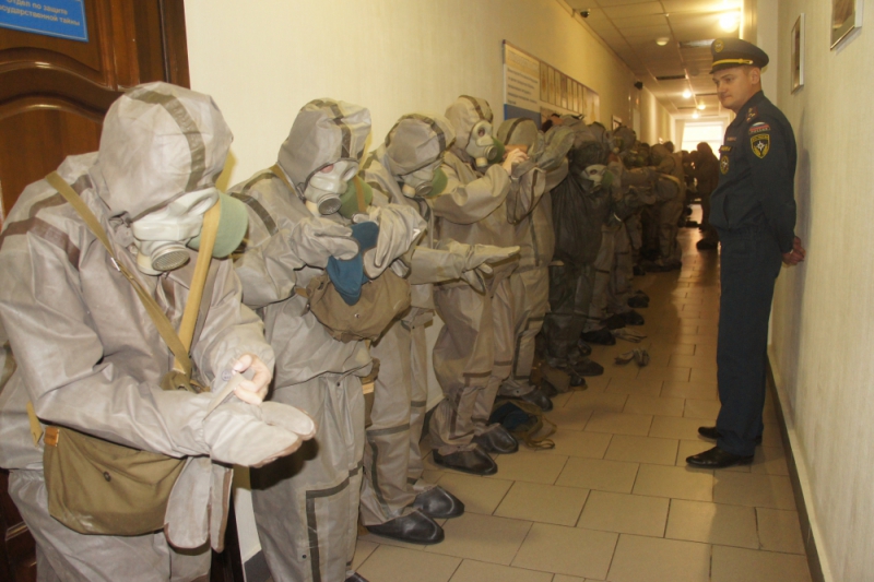 Сегодня в ходе еженедельного построения личного состава сотрудники спасательного ведомства выполнили нормативы по надеванию противогазов и защитных костюмов Л-1. В роли экспертов выступили специалисты Управления гражданской защиты, которые оценивали не только скорость выполнения норматива, но и правильность каждого действия.