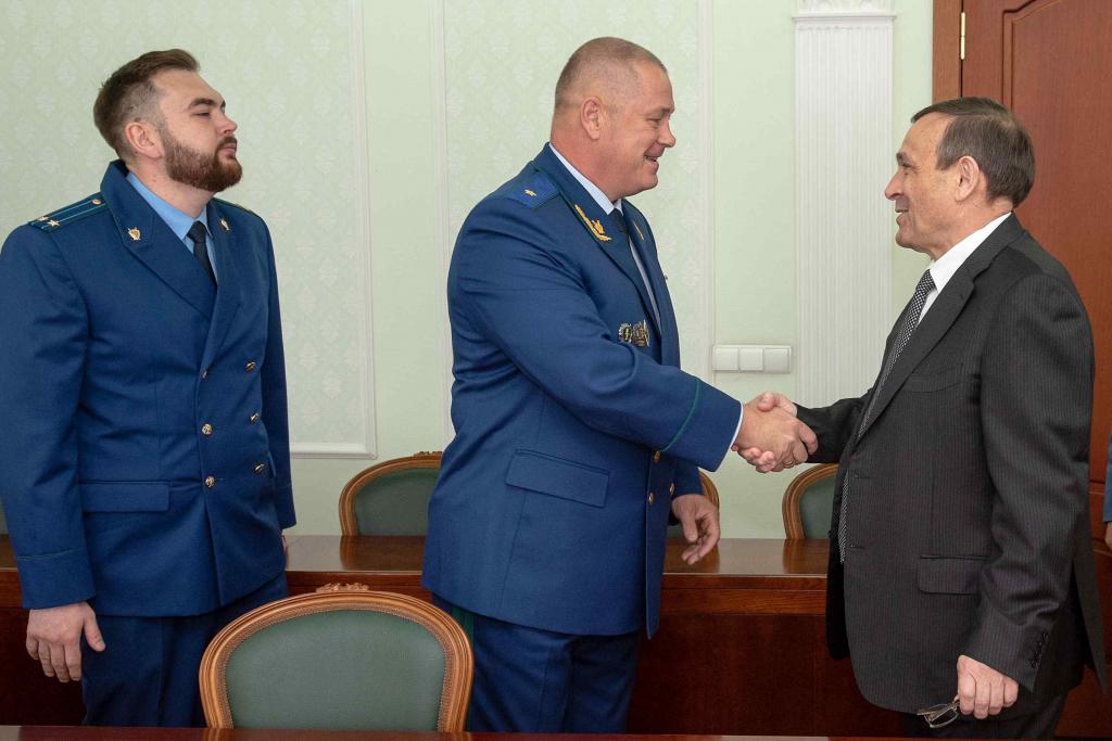 Сегодня Александр Евстифеев провёл рабочую встречу с Волжским межрегиональным природоохранным прокурором Вениамином Селифановым и Ильнуром Нафиковым, назначенным на должность Марийского межрайонного природоохранного прокурора.