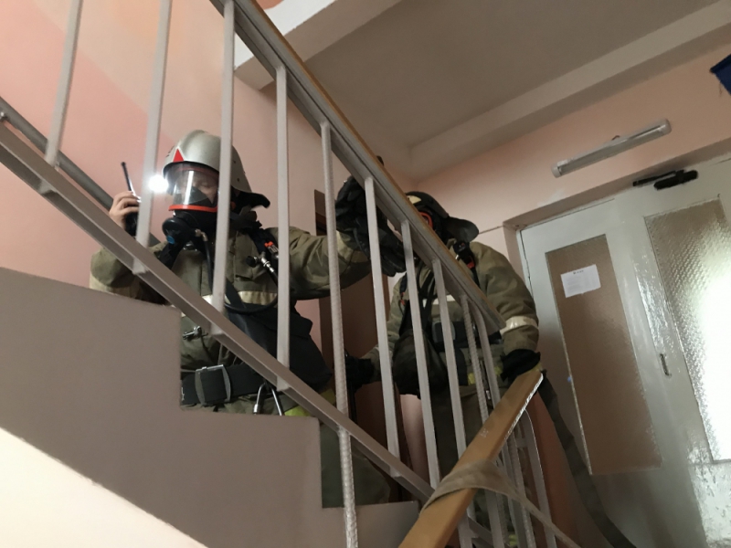 На месте условного пожара было организовано два боевых участках. На первом из них подразделениям была поставлена задача ликвидировать горение в комнате 3 этажа и организовать защиту смежных помещений и чердака, на втором — основные усилия были направлены на поиск и спасение людей в подвале, 1 и 2 этажах.