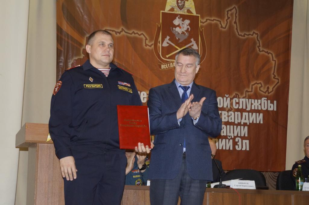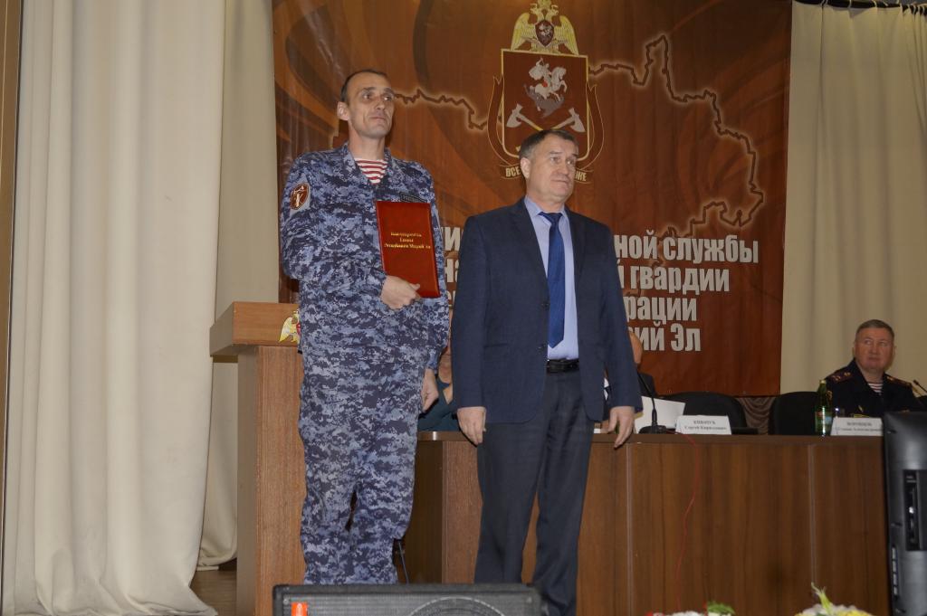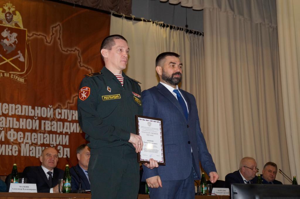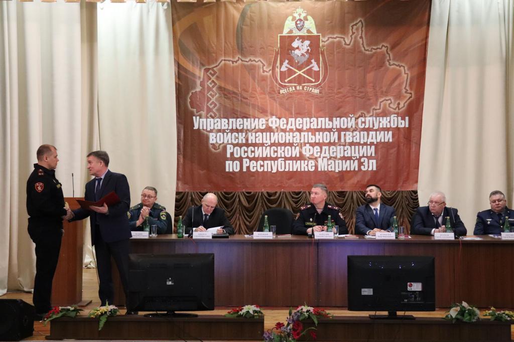 К сотрудникам Росгвардии обратился обратился заместитель председателя Правительства Республики Марий Эл Степан Воронцов: «С большим удовлетворением отмечаю, что задачи, возложенные на личный состав структурных подразделений, в 2019 году выполнены в полном объеме. Силы и средства Росгвардии привлекались к выполнению различных служебных задач по охране общественного порядка и общественной безопасности значимых мероприятий республики. Особо хочу отметить активное участие управления Росгвардии в патриотическом воспитании подрастающего поколения. Это создание профильных классов войск национальной гвардии, взаимодействие сотрудников ОМОН с подшефной специальной школой-интернатом для детей с ограниченными возможностями, организация патриотических встреч действующих сотрудников и ветеранов с подрастающим поколением. Выражаю благодарность всему личному составу подразделений Росгвардии. Несомненно, благоприятная оперативная обстановка будет способствовать решению задач по реализации новых национальных проектов в 2020 году».