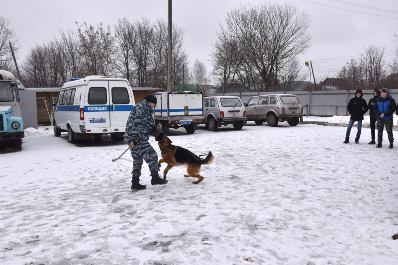 В рамках акции «Студенческий десант» ребята познакомились с работой полицейских кинологов.