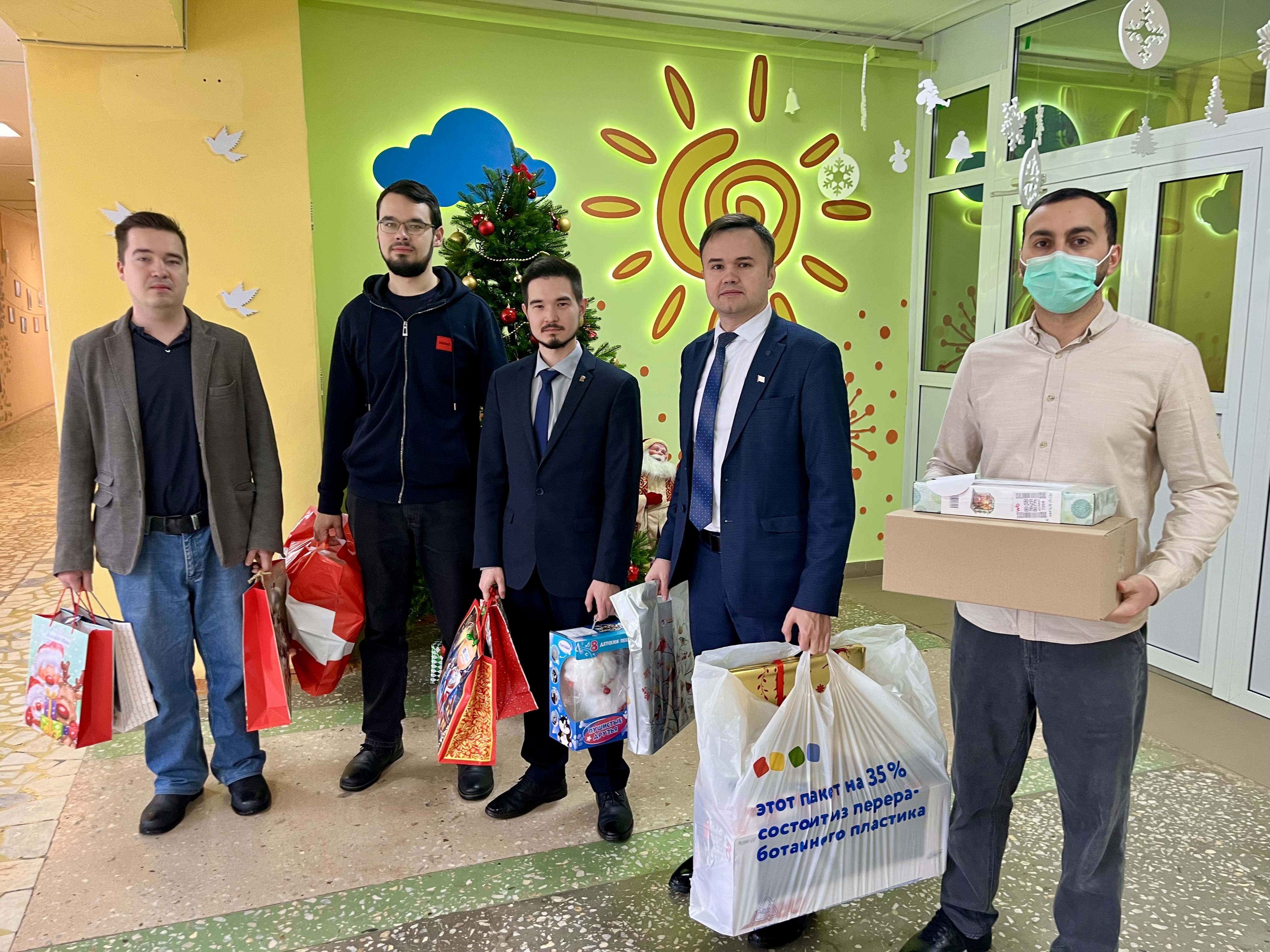 Помощник заместителя председателя Госсобрания Григорий Мушкин и члены Молодёжного парламента Андрей Загайнов, Сергей Козин, Никита Крюков и Муса Моллачиев отправились в гости к воспитанникам детского дома-интерната «Солнышко», чтобы лично вручить детям долгожданные новогодние подарки.