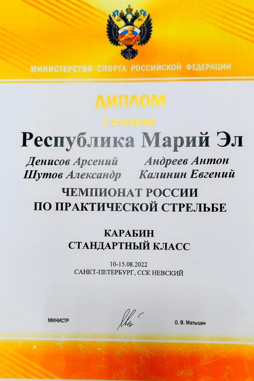 «В упражнении «КС-1 карабин стандартный» лучший результат показал Арсений Денисов - 1 место. В дуэльной стрельбе призёрами стали представители Марий Эл - Александр Шутов (2 место) и Арсений Денисов (3 место). Поздравляем наших спортсменов с очередной победой на чемпионате России», - отметили в региональном отделении ДОСААФ.