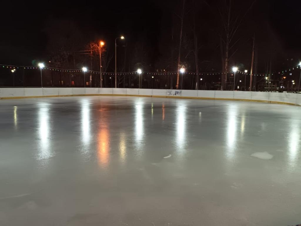В настоящее время на территории заливают лёд, подключают освещение и гирлянды, устанавливают аппаратуру для озвучивания.