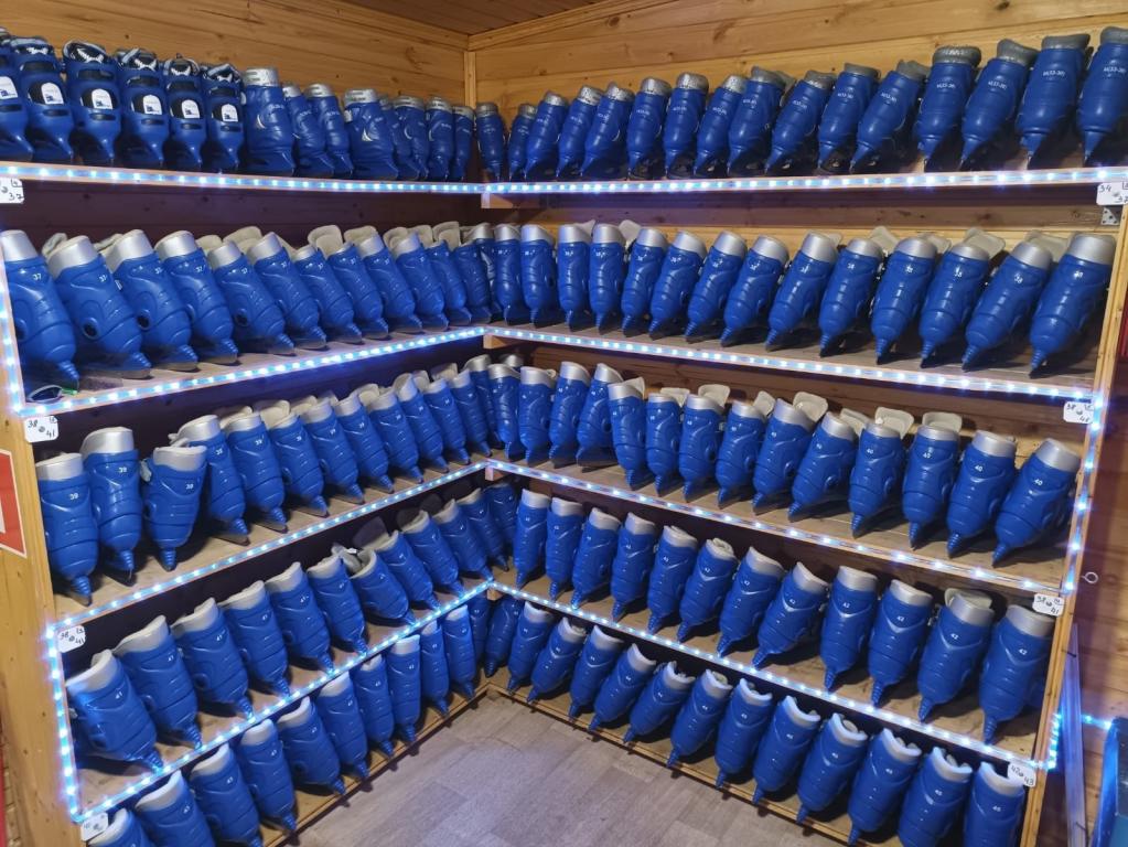 Для посетителей поставили также два отапливаемых вагончика. В них можно переодеться и взять коньки в прокат. Кроме того, желающие могут тут же согреться горячими напитками из кофейного аппарата.