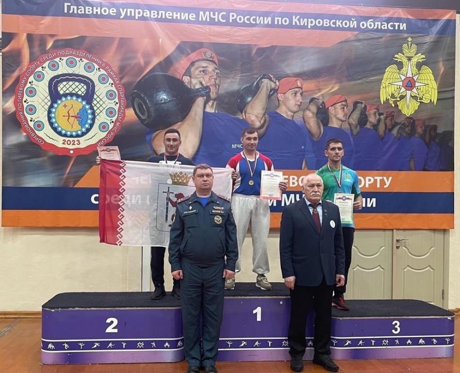 В Кирове в рамках Спартакиады ПФО МЧС России прошли соревнования по гиревому спорту. За места на пьедестале состязались 14 команд со всего округа по шести весовым категориям.