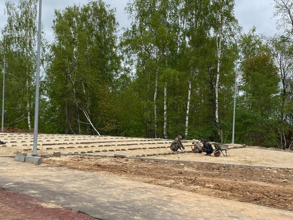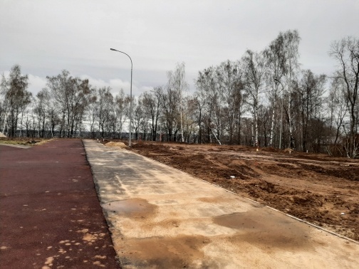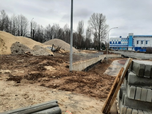 В апреле подрядная организация возобновила здесь работы. На территорию завезли строительные материалы, малые архитектурные формы. Рабочие приступили к подготовке основания для площадок и установке ограждения на подпорных стенках.