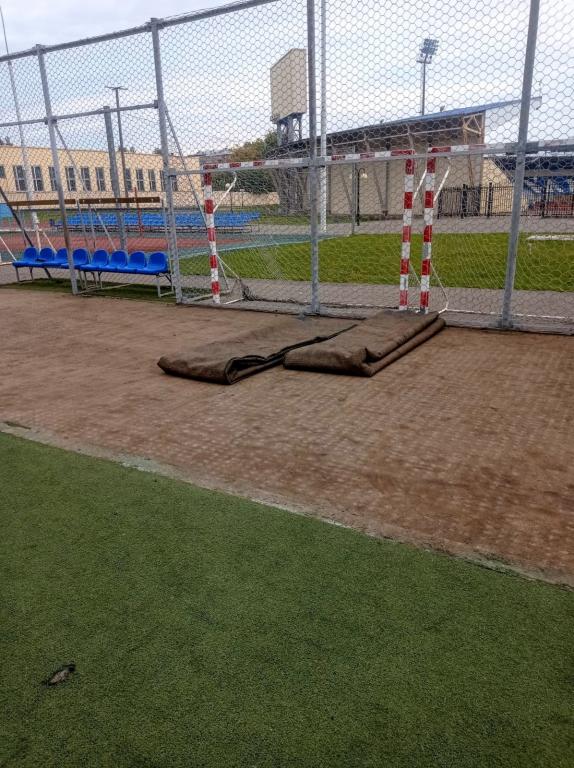 На стадионе «Дружба» в Йошкар-Оле обновляют поле для игры в мини-футбол.
