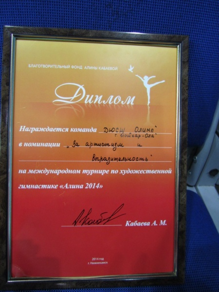 МариМедиа, 19 февраля. Воспитанницы детско-юношеской спортивной школы «Олимп» столицы Марий Эл вернулись с Международного фестиваля «Алина-2014», организатором которого являлся благотворительный фонд Алины Кабаевой. Соревнования по художественной гимнастике проводились в родном городе депутата Госдумы РФ — Нижнекамске. Фестиваль проводился в пятый раз и собрал полторы тысячи участниц из разных регионов России. Победительниц определяли по трем местам и в трех номинациях.