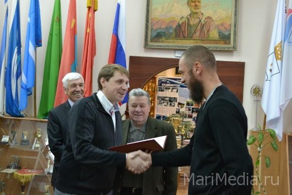 Интересная встреча в эти дни состоялась в республиканском музее спортивной славы, который расположен в Марийском государственном университете. Сюда Александр пришел вместе с отцом Владимиром Ивановичем, чтобы осмотреть музейную экспозицию. Директор хранилища спортивных раритетов Михаил Шалагин провел для гостей экскурсию. Впрочем, и сам Александр выступил в роли экскурсовода. Дело в том, что в музее есть стенд, посвященный прославленному вратарю. И уже Александр Филимонов подробно рассказал собравшимся об этих экспонатах. А завершилась встреча в стенах МарГУ на торжественной ноте. Ректор университета, депутат Государственного Собрания Марий Эл Михаил Швецов вручил Александру Филимонову почетную грамоту марийского парламента.