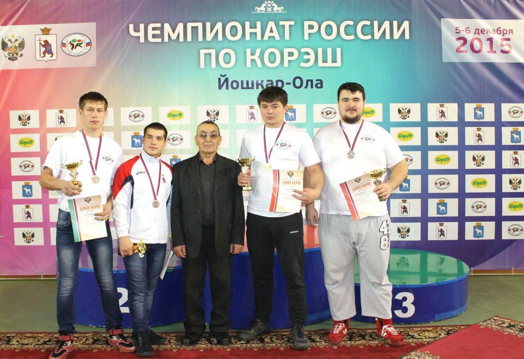 Состязания проходили в девяти весовых категориях. Марий Эл была представлена воспитанниками детско-юношеской спортивной школы борьбы «кореш». По данным пресс-службы регионального Минспорта, бронзовые награды завоевали Иван Андреев в весовой категории до 60 кг и Олег Васингин в весе до 70 кг. Рустам Фатыхов, боровшийся в весе свыше 100 кг, завоевал «серебро». Чемпионом России по корэш в весовой категории 100 кг стал Муса Галлямов.