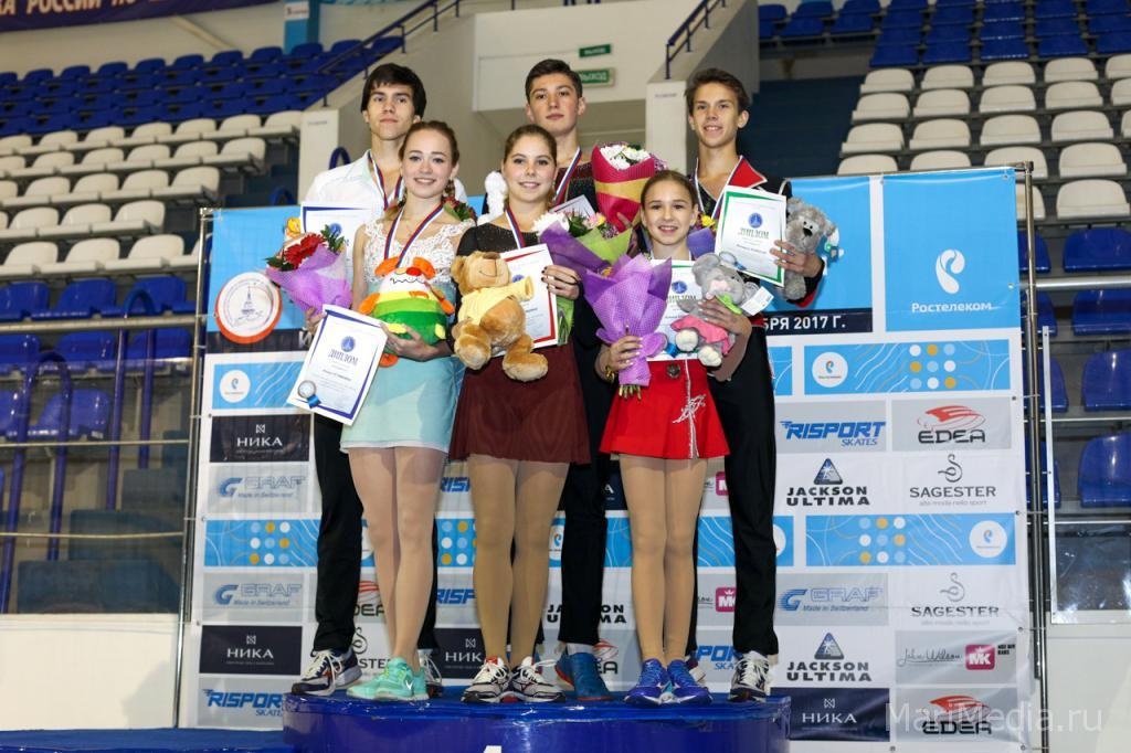 В соревнованиях пар на первое место вышла пара из Санкт-Петербурга Дарья Кварталова — Алексей Святченко. Молодые фигуристы набрали 169.40 очков.