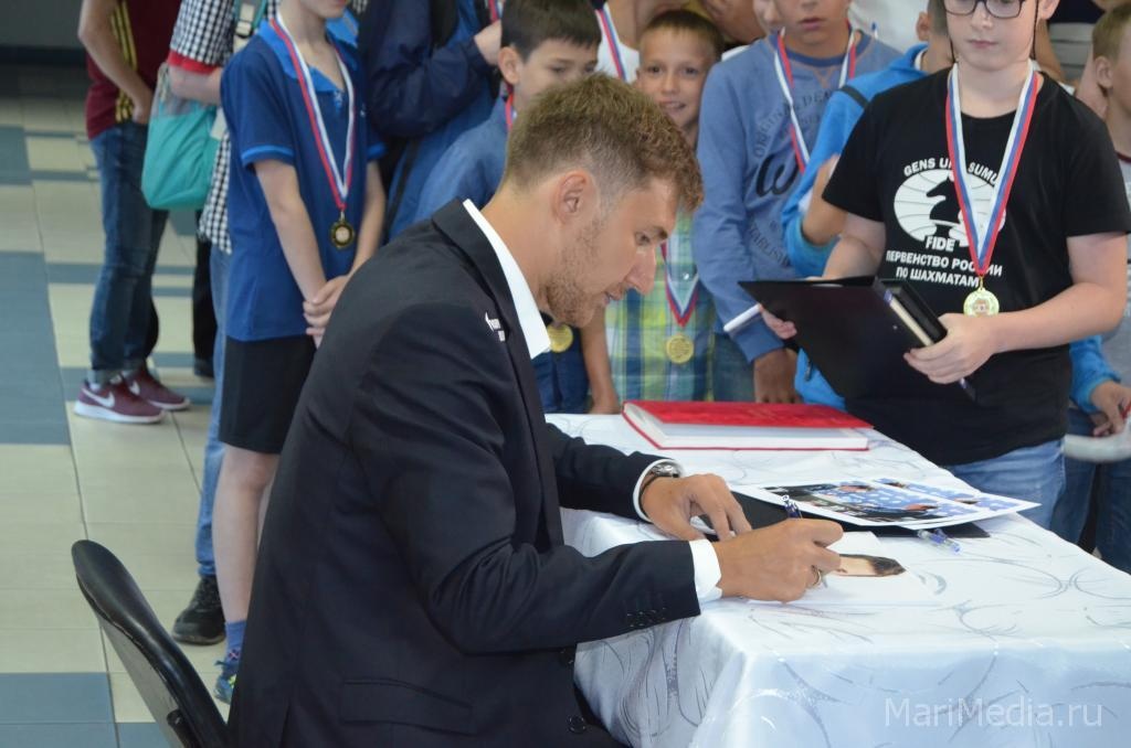 Сергей встретился с представителями шахматной федерации Марий Эл, юными шахматистами города. На встрече с ним спортсмен подчеркнул важность развития шахматного спорта на всех уровнях.