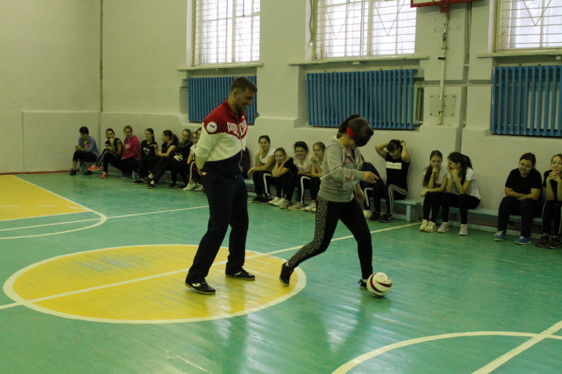 В Йошкар-Олинском технологическом колледже всероссийский спортивный марафон поддержали чемпионка республики по фитнес–аэробике Анна-Разумова, затем мастер-класс по слепому владению мячом провел чемпион Европы 2017 года по мини-футболу среди слепых Кирилл Печенин.