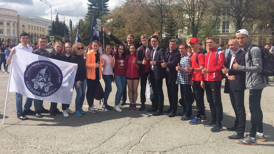 Команда Марийского государственного университета, в состав которой входят исключительно студенты, занимающиеся в легкоатлетической секции Центра физкультурно-спортивной деятельности, успешно преодолела все этапы эстафеты и на радость болельщикам пришла к финишу первой.