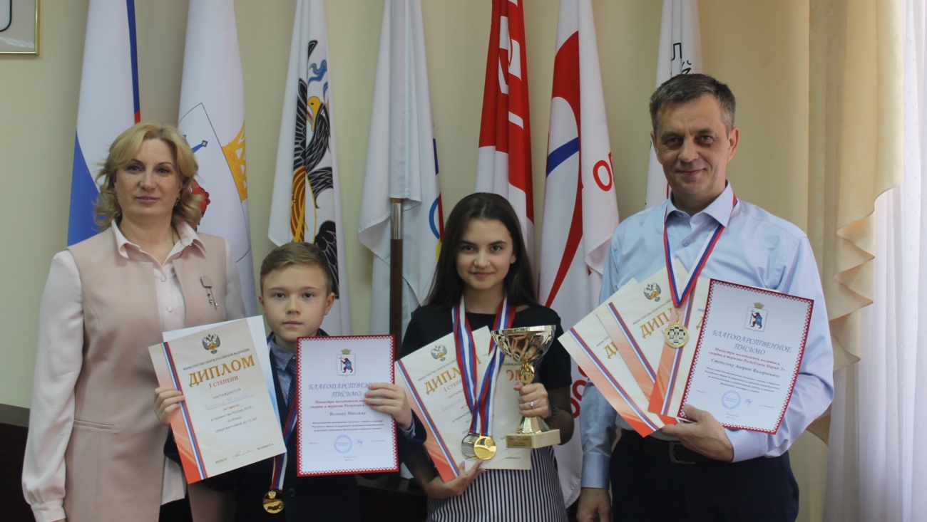 В Министерстве молодежной политики, спорта и туризма поздравили победителей Детско-юношеского Первенства России по шахматам, которое проходило в апреле в Сочи.