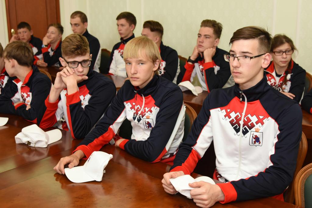На встречу с Главой региона спортсмены республики пришли в специализированной форме, как подтверждение своей готовности к Спартакиаде. Руководитель делегации Кирилл Печенин заверил, что бороться ребята намерены только за «золото» и поблагодарил Александра Евстифеева за внимание к ребятам и доброе напутствие.