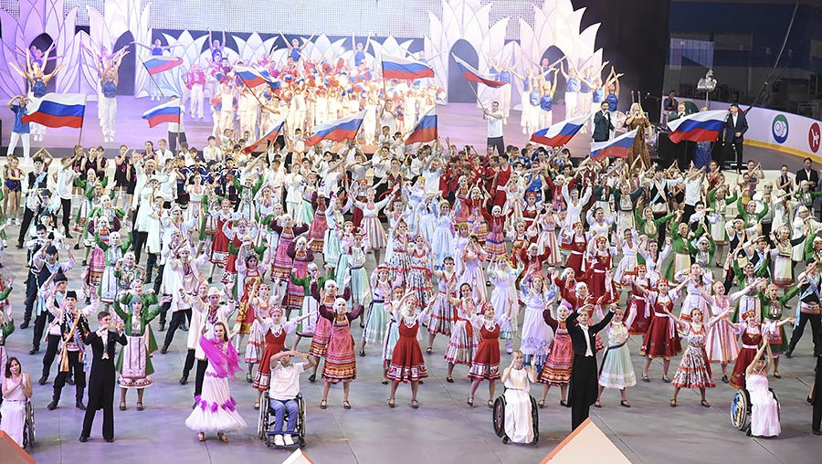 Тысячная команда артистов отработала творческие номера, а также элементы приветствия участников соревнований и вынос флага. Тематика выступлений артистов — различна. В программе номера как спортивной, так и художественной направленности. Все действо сопровождается многочисленными спецэффектами.