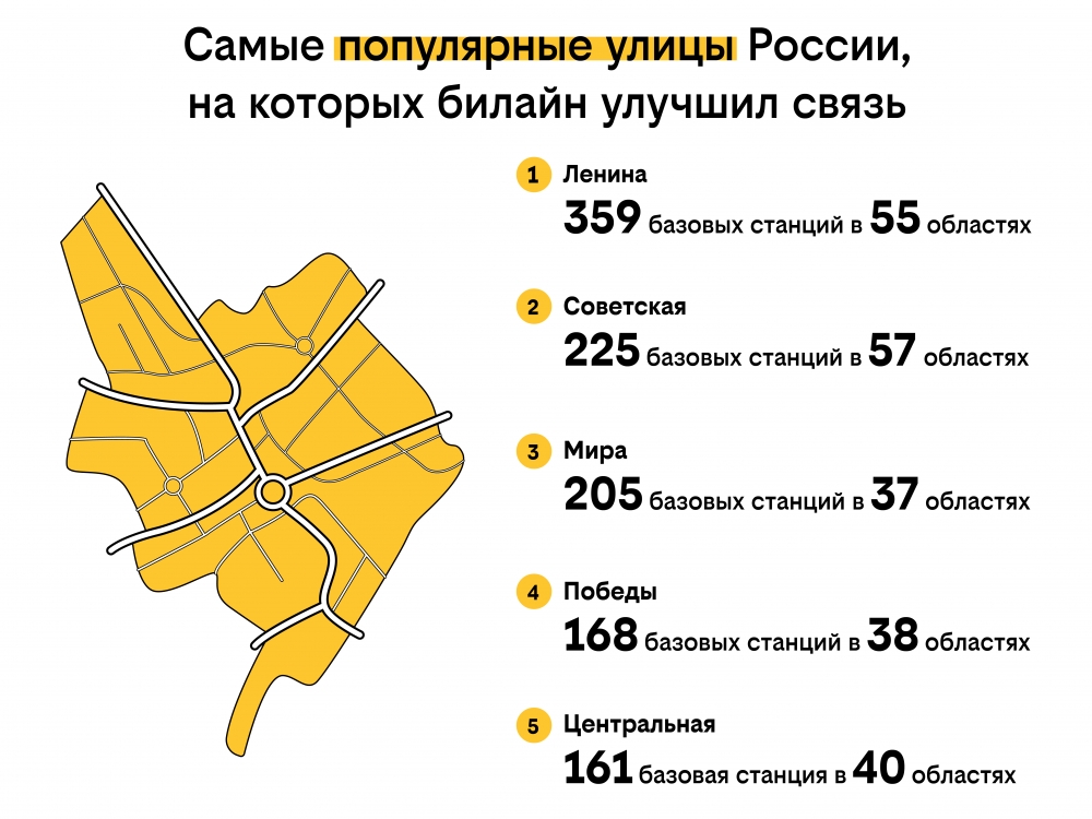 Начнем с названий, общих для многих городов страны. В прошлом году компания построила базовые станции на нескольких сотнях улиц Ленина, расположенных в 55 регионах России.