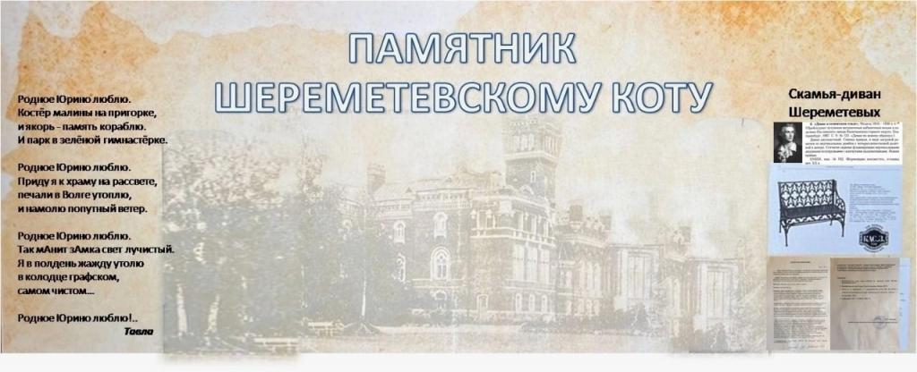 В Юрино, как и в Йошкар-Оле, теперь есть свой кот. Скульптуру бронзового кота, вальяжно разместившегося на чугуном диване с книгой с гербом Шереметевых, отлили на заказ на Каслинском чугунолитейном заводе Челябинской области. Установили её в посёлке недалеко от замка возле магазина с сувенирами.