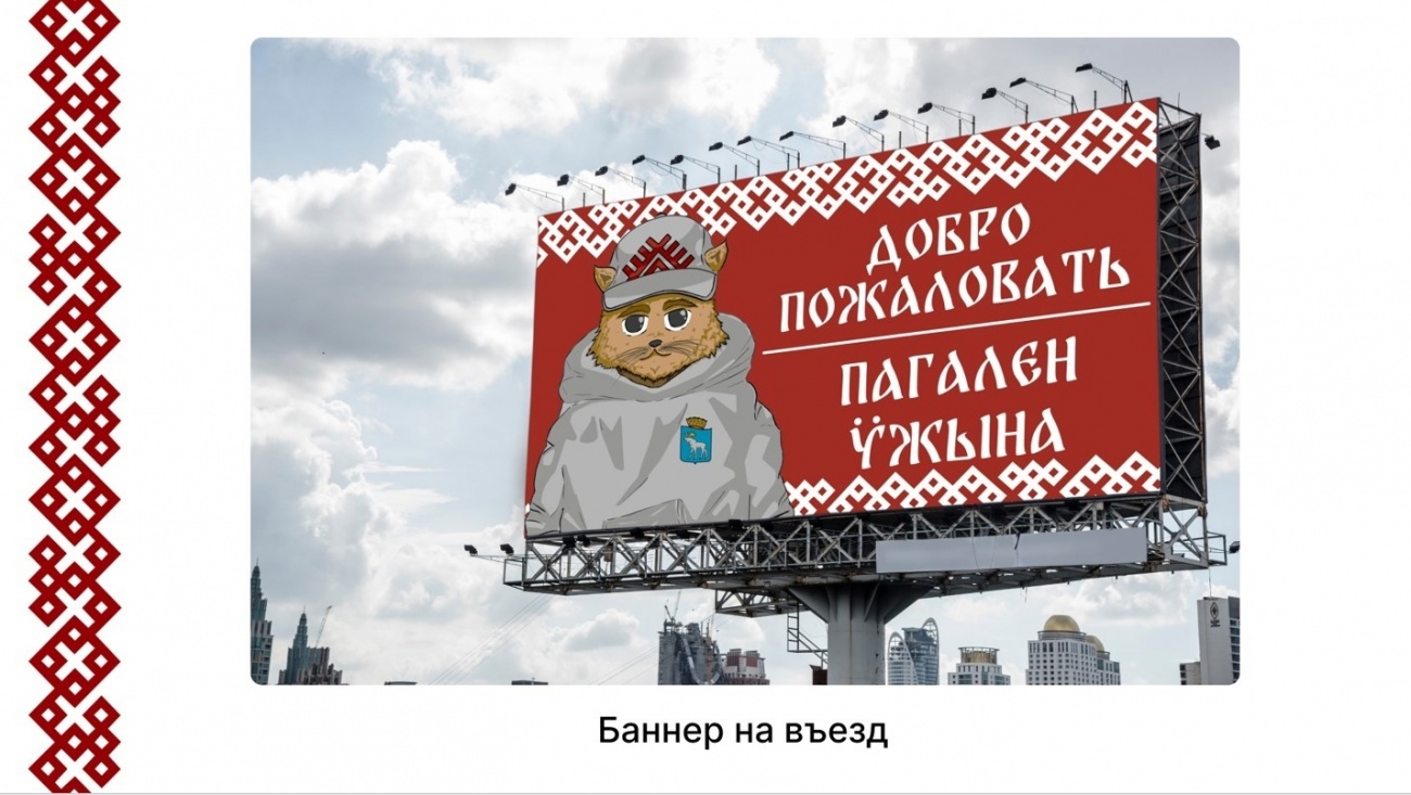 Проект предполагает установку скульптуры в виде символа республики — медведя и баннер с Йошкиным котом.
