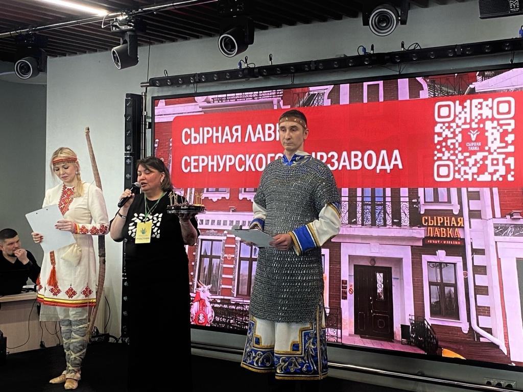 Команда Йошкар-Олы рассказала о традициях марийской столицы, о сувенирах и тех, кто участвует и занимает призовые места в конкурсах сувенирной продукции. Жюри были представлены изделия из бересты, марийская вышивка, мармелад и сыр.