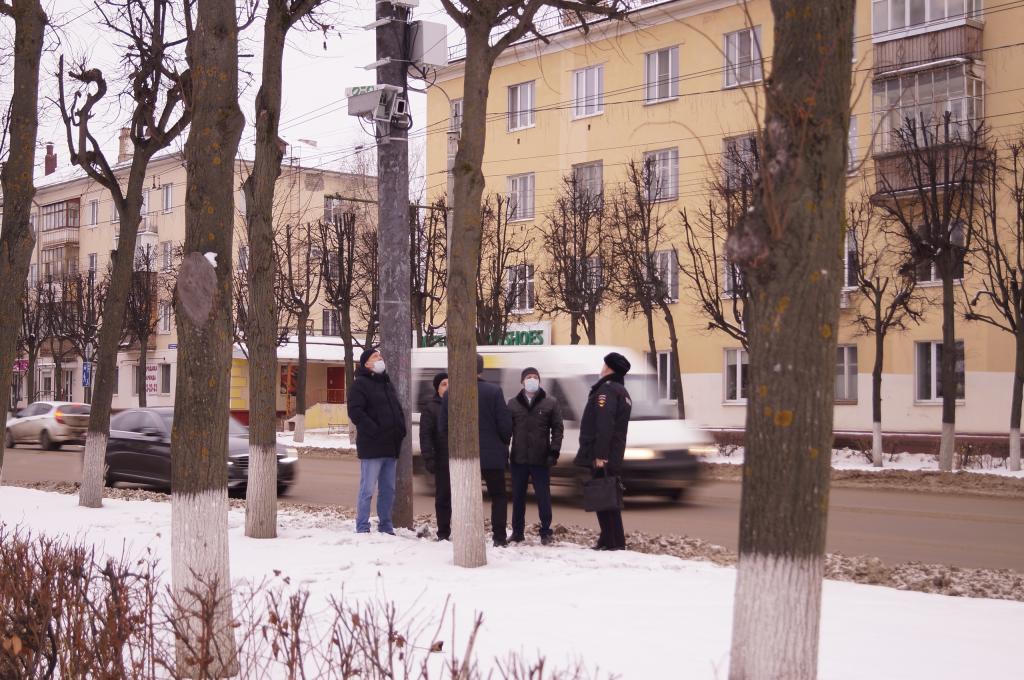 На перекрёстке Ленинского проспекта и улицы К. Маркса дежурит регулировщик.