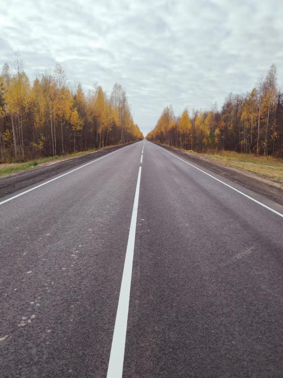 Для устранения деформаций и трещин на участке с 335 по 353 км автодороги специалисты уложили 4-сантиметровое покрытие из щебёночно-мастичного асфальтобетона. Также досыпали обочины и нанесли горизонтальную дорожную разметку.
