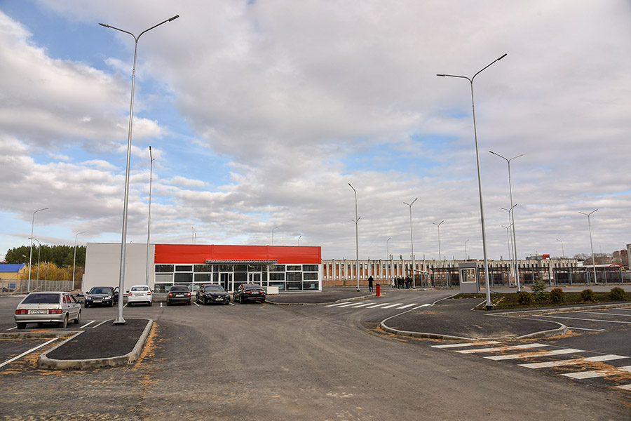Уже проложены внутриплощадные сети, а также хозяйственно-бытовые и ливневые сети канализации. Выполнены работы по монтажу стен и крыши здания. Завершено озеленение территории и произведено устройство асфальтобетонного покрытия, также на стадии завершения работы по наружному освещению и устройству остановочных павильонов.