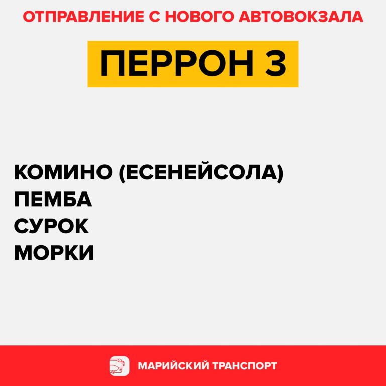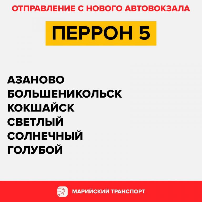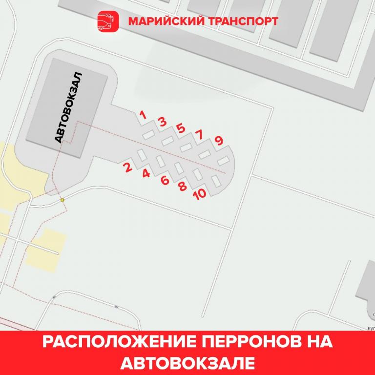 В группе марийского транспорта сообщили, какие транспортные маршруты закреплены за каждым перроном.