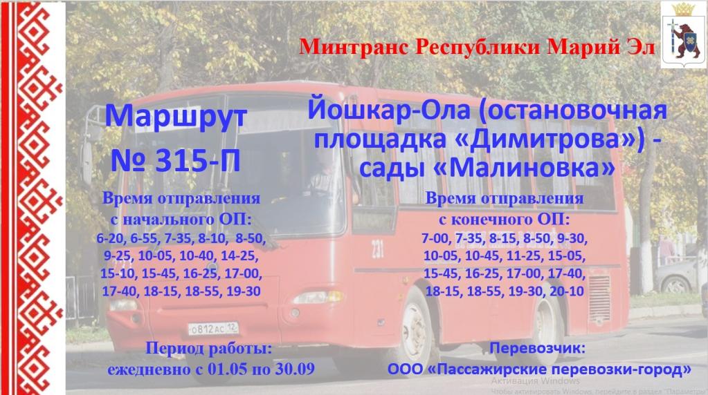 В сады «Чкаэнерка» автобусный маршрут № 314-П начал ходить с 10 апреля.