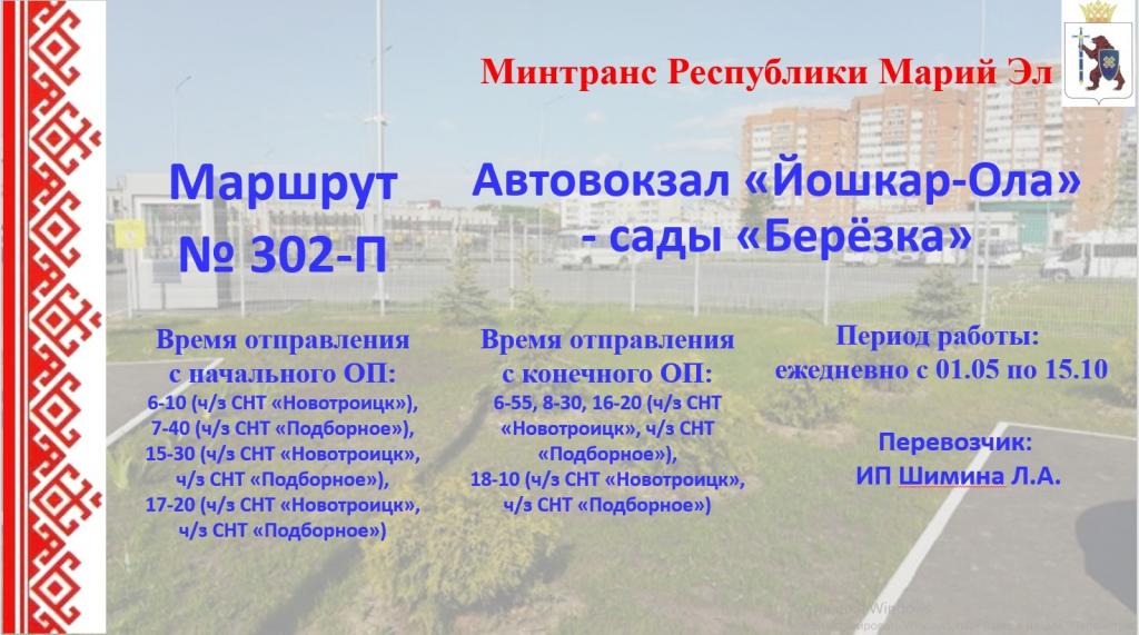 С 1 мая — в сады «Чернушка», «Малиновка» (№№ 313-П, 316-П, 329-П), «Берёзка», «Мазары», «Новотроицк», «Пиштер», «Черёмушки».