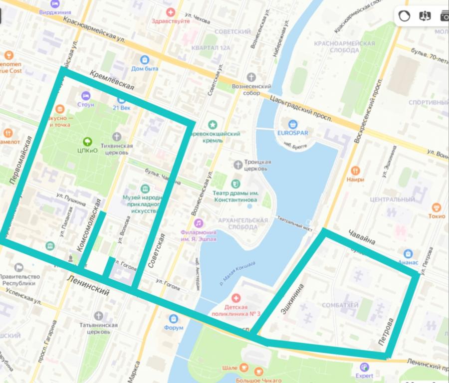 - по ул. Кремлёвской от ул. Советской до ул. Первомайской;
