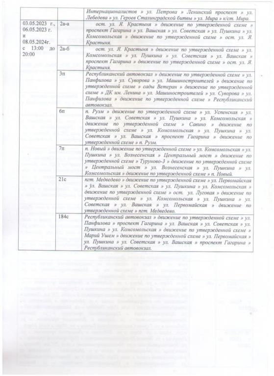 По данным ГУП «Троллейбусный транспорт», изменится схема движения троллейбусов: №№ 1, м2, м2с, 3, 3с, 5, 6, м8. Автобусов: №№ 2а-а, 2а-б, 3п, 6п, 7п, 21с, 184с.