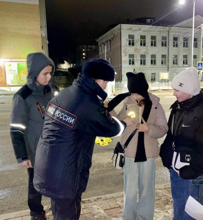 В ходе акции школьники раздавали информационные листовки и световозвращающие аксессуары гражданам, а также обращали их внимание на обязательное ношение светящихся элементов на одежде.