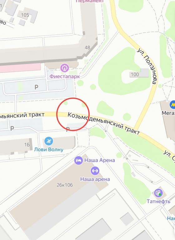 - на Козьмодемьянском тракте (в районе д. 1Г по ул. Зелёной),