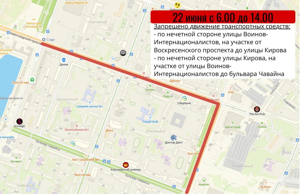 В Йошкар-Оле завтра, 22 июня, пройдут масштабные соревнования по триатлону. В связи с этим в заречной части города будут действовать транспортные ограничения.