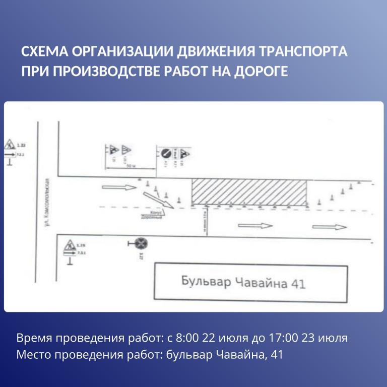 Завтра, 22 июля, с 8:00 и до 17:00 23 июля для транспорта будет закрыта левая полоса от дома № 41 «А» до дома № 39.