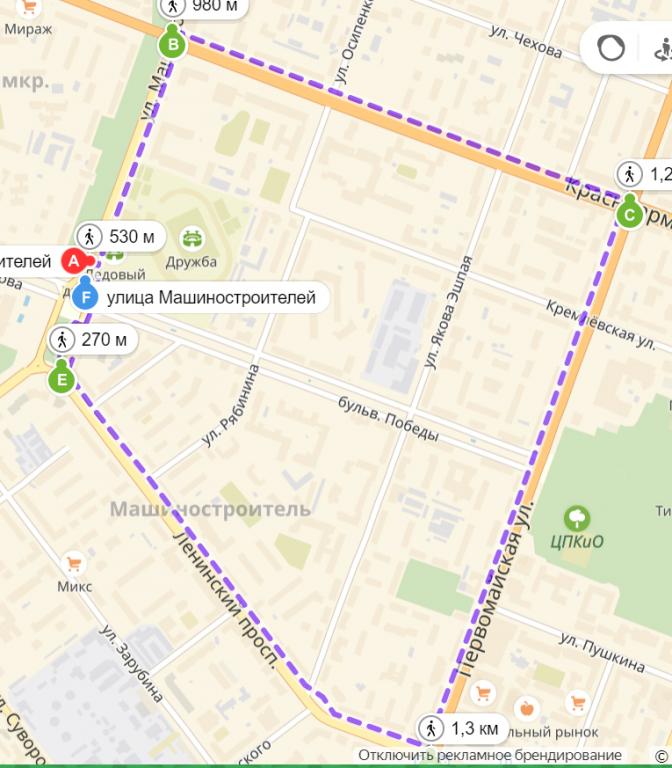 - по Ленинскому проспекту до кругового движения ул. Машиностроителей;