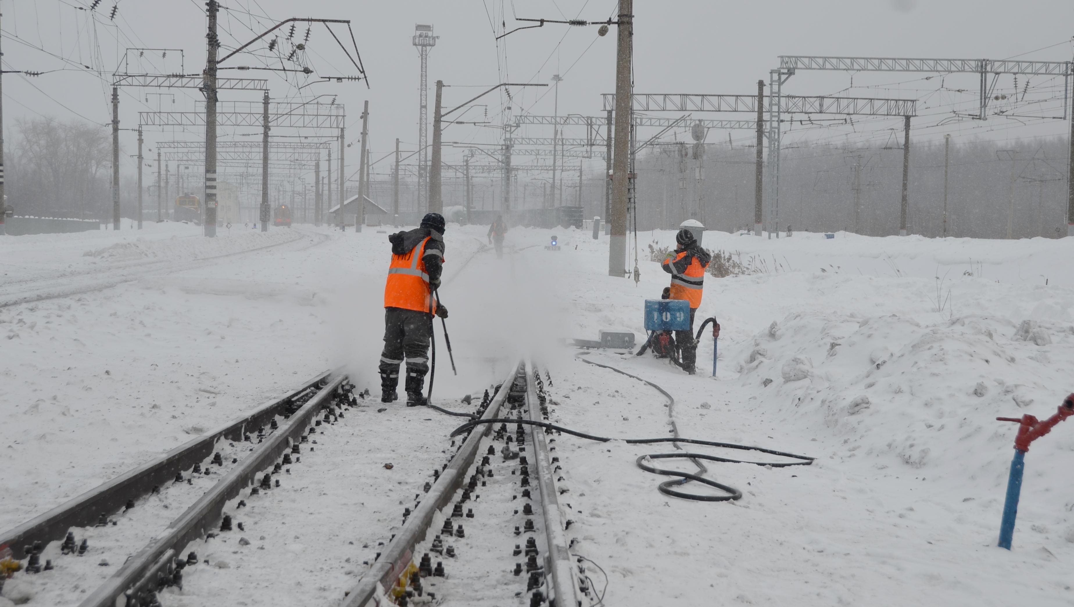 Железнодорожники очищают вокзалы и станции, обрабатывают территории от наледи, посыпают платформы песком и реагентами. Также усилен контроль за состоянием освещения, стрелочных компрессоров, систем связи и противообледенения контактной сети.