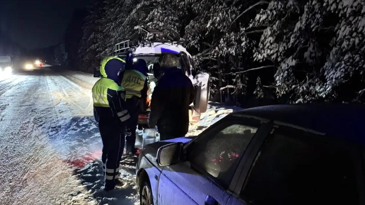 Помощь в сложных дорожных условиях понадобилась семье из трёх человек. Их машина сломалась прямо на дороге.
