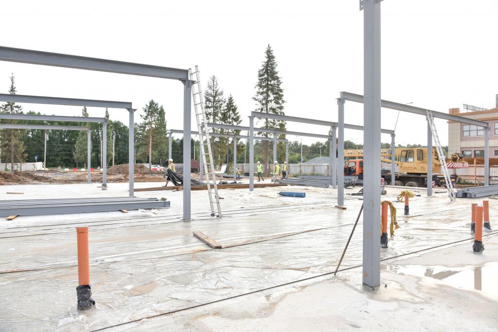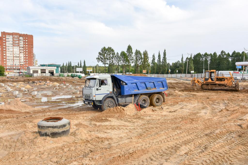 К строительству нового транспортного узла рабочие приступили в июне этого года. На сегодняшний день забиты сваи, залито бетоном основание. Параллельно ведётся прокладка ливневой канализации.