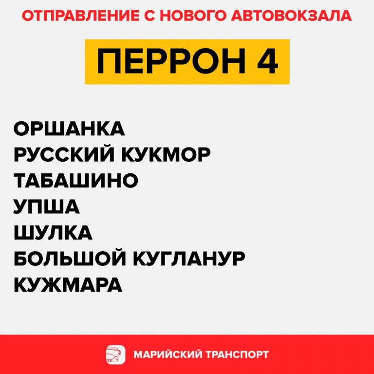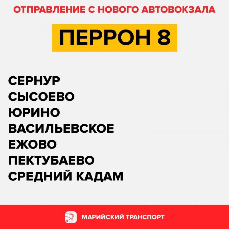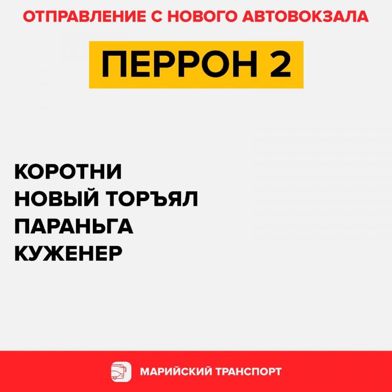 В группе марийского транспорта сообщили, какие транспортные маршруты закреплены за каждым перроном.