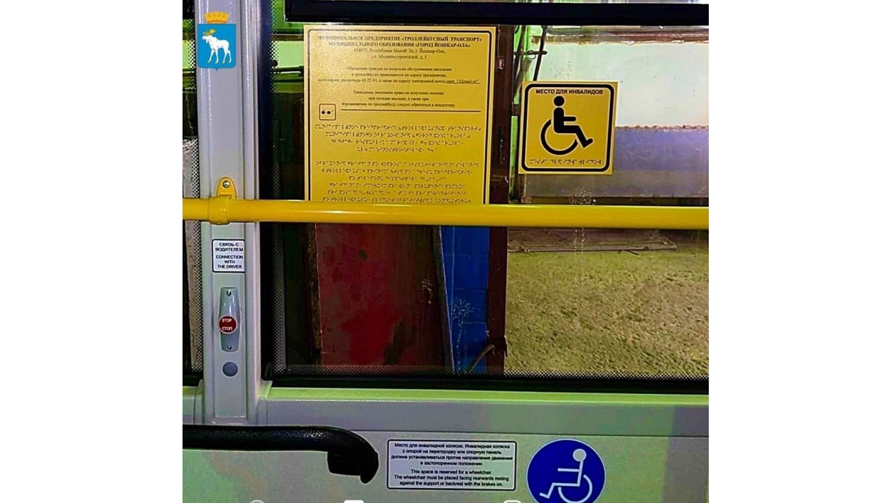 Троллейбусы Йошкар-Олы всё больше приспосабливают и для людей с ограниченными возможностями. Одним из последних нововведений стало появление тактильных табличек.