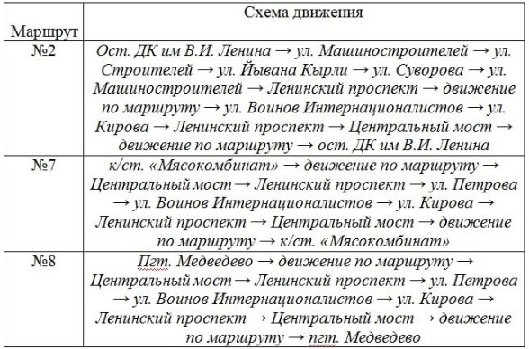Так, с сегодняшнего дня и до 24 июня городской транспорт № 2, 7 и 8 будет ходить по схеме, указанной в таблице.